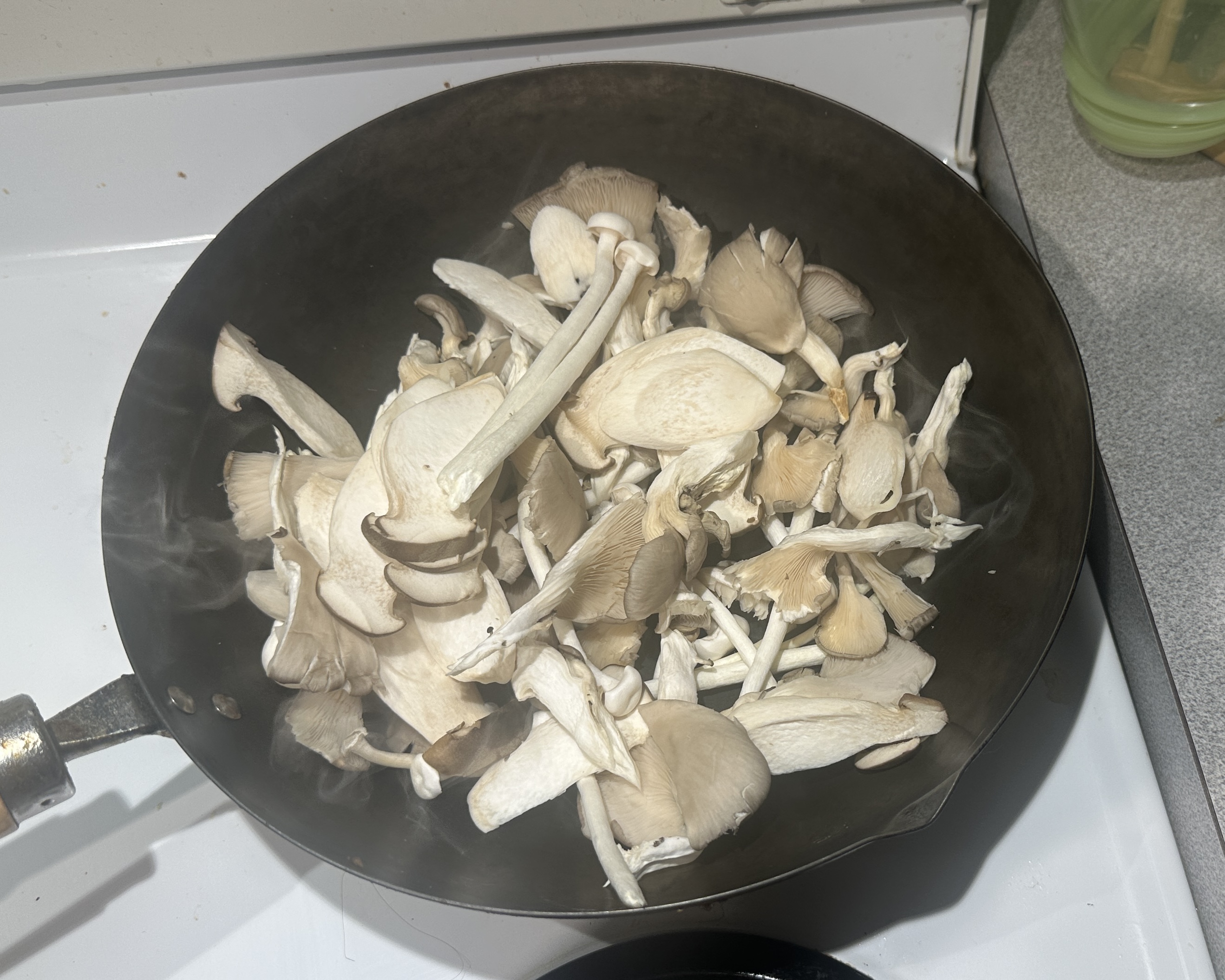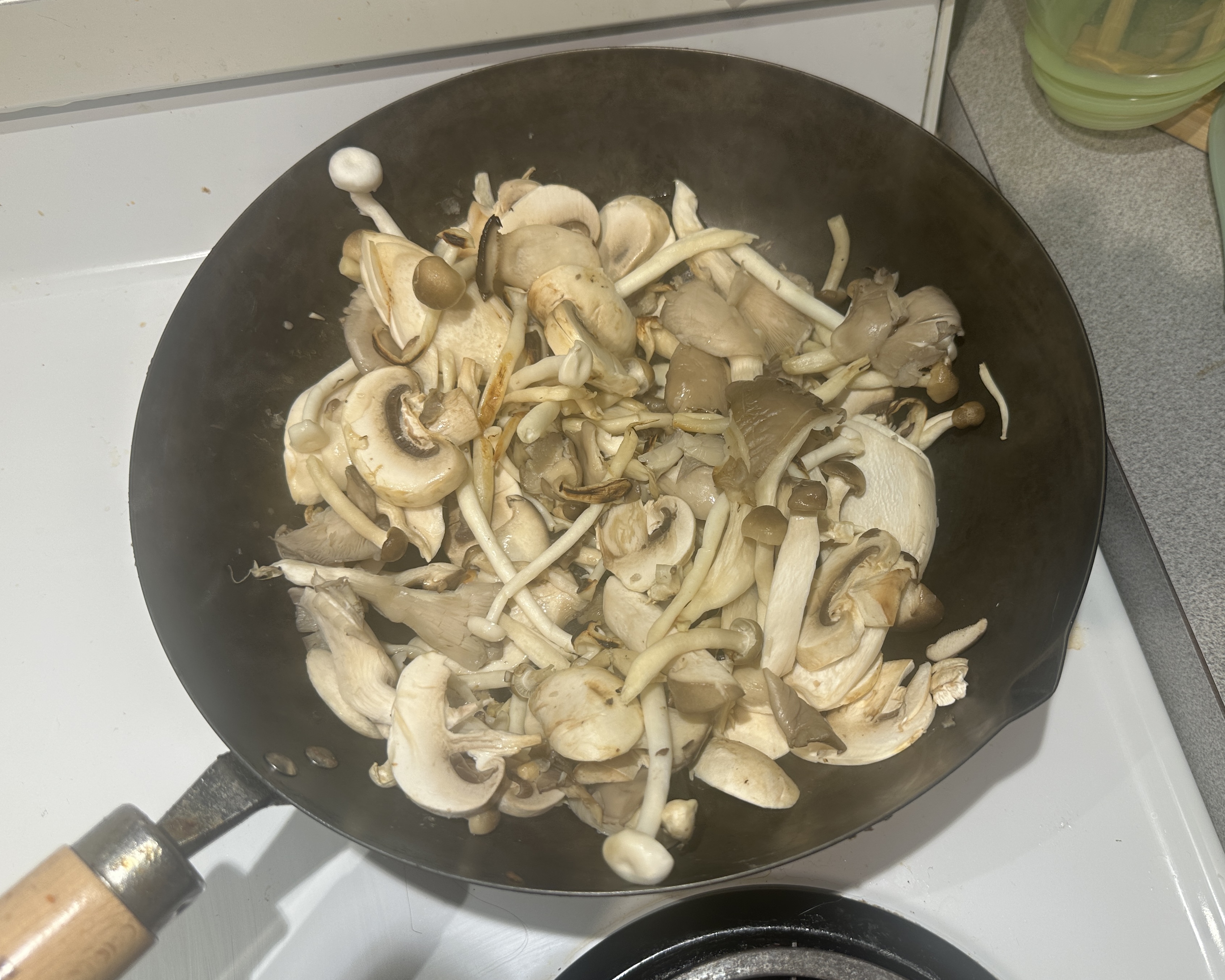 小知识:蘑菇“尖叫”的声音,是水分析出后迅速蒸发的声音。 如果你后续的调味比较咸(比如酱油),就不要放太多盐了,我第一次做就又放盐又调味结果蘑菇炒了还会缩水就很咸,差点拉黑此食谱,好在后面不断改良