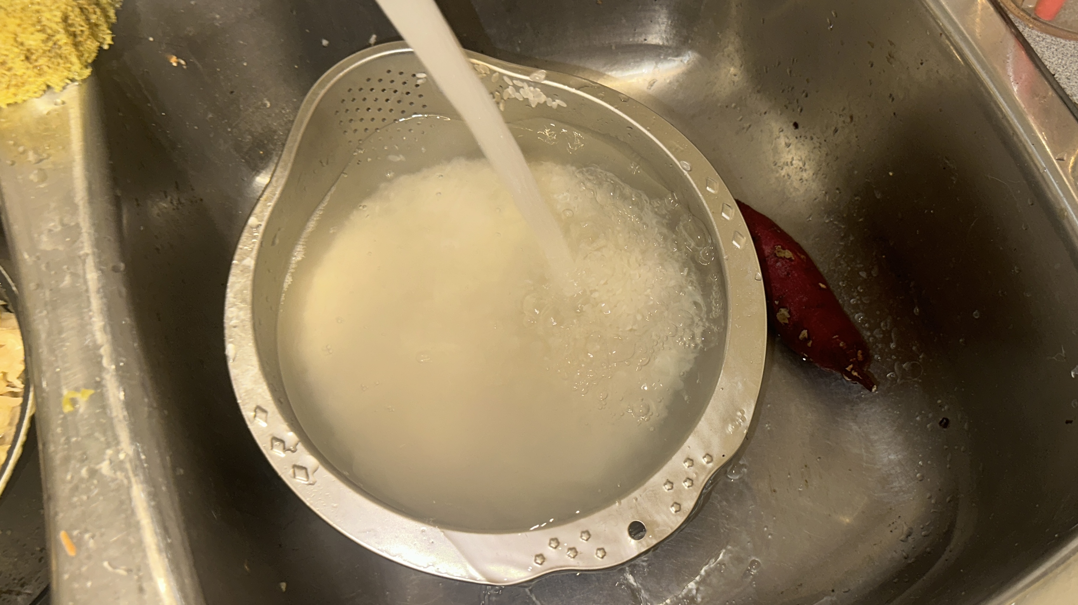 这就是粒粒分明的秘诀,反复淘米不是为了洗掉脏东西,而是为了去除表面淀粉,避免米饭黏黏糊糊。所以也可以反向操作,如果你喜欢粒粒分明,就多淘米;喜欢黏糊米饭,就淘一次。
