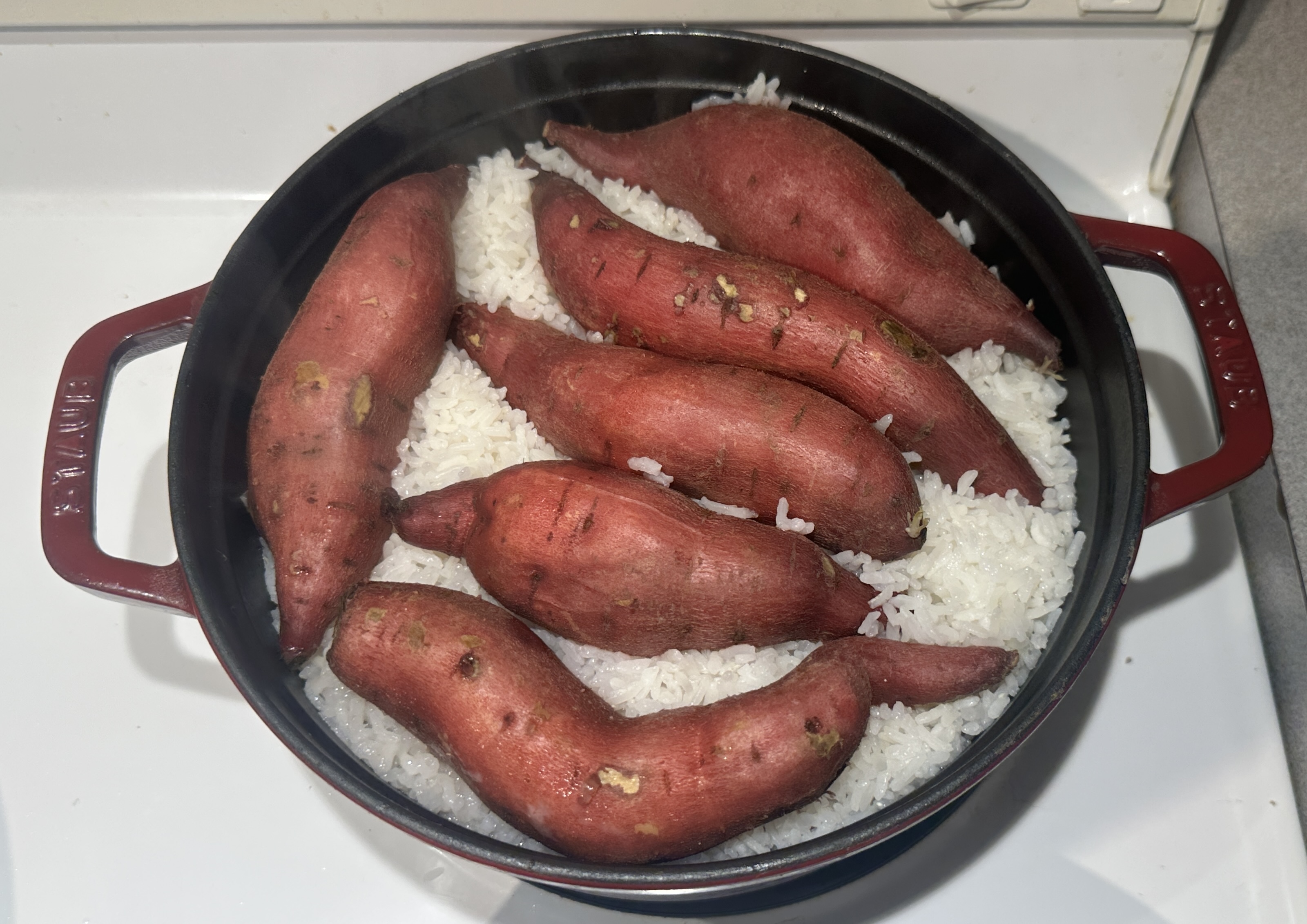 - 我家没有电饭煲我也懒得买,所以还是用的万能 staub 做。